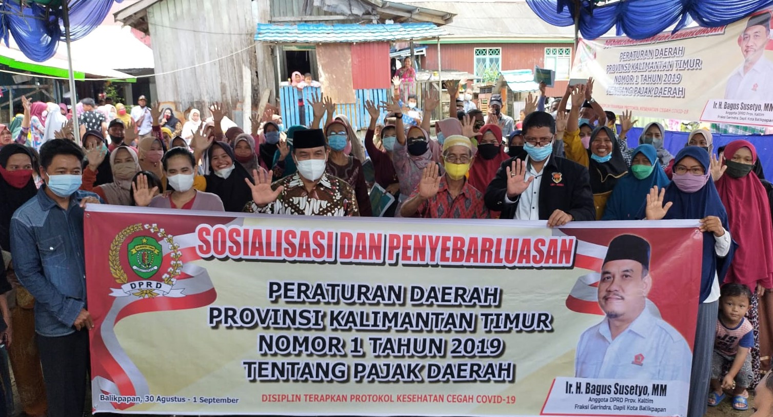 BALIKPAPAN,suarabalikpapan.com-Ketua Fraksi Gerindra DPRD Kaltim, Ir H Bagus Susetyo, MM melakukan sosialisasi Perda Nomor 01 Tahun 2019 tentang Perubahan Kedua Atas Perubahan Perda Provinsi Kaltim Nomor 1 Tahun 2011 Tentang Pajak Daerah, di kawasan Tanjung Kelor,  RT 10 Kelurahan Manggar Baru, Balikpapan Timur, pada Senin (30/8/2021) pukul 09.00 wita.
