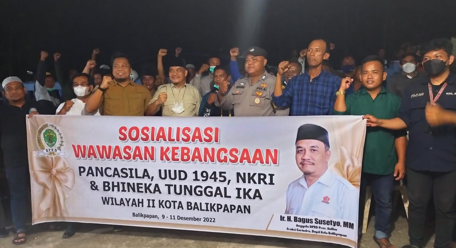 BALIKPAPAN,suarabalikpapan.com-Ketua Fraksi Gerindra DPRD Kaltim, Ir H Bagus Susetyo, MM melakukan sosialisasi Wawasan Kebangsaan (Wasbang) di Jalan Sungai Wain, Kelurahan Karang Joang, Balikpapan utara, pada Jumat (9/12/2022) pukul 19.00 wita.