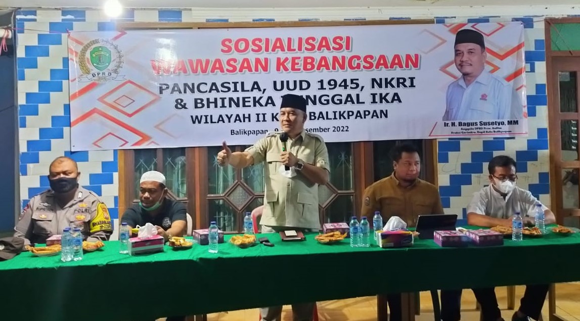 Anggota DPRD Kaltim Bagus Susetyo menjelaskan, Wawasan Kebangsaan ini sangat penting disosialisasikan kepada masyarakat, terutama 4 pilar kebangsaan yakni Pancasila, Undang-Undang Dasar 1945 (UUD 45), Negara Kesatuan Republik Indonesia (NKRI) serta Bhineka Tunggal Ika. “Jadi sosialisasi empat pilar kebangsaan ini untuk menumbuhkan kembali kesadaran masyarakat dalam berbangsa dan bernegara,” kata Bagus Susetyo.
