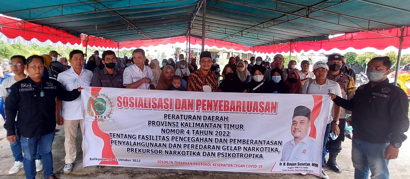 BALIKPAPAN,suarabalikpapan.com-Ketua Fraksi Gerindra DPRD Kaltim, Ir H Bagus Susetyo, MM melakukan Sosialisasi Perda (Sosper) Provinsi Kaltim Nomor 07 Tahun 2017 tentang Fasilitasi Pencegahan Penyalahgunaan Narkotika, di RT 10 Kelurahan Kariangau, Kecamatan Balikpapan Barat, pada Sabtu (1/10/2022).