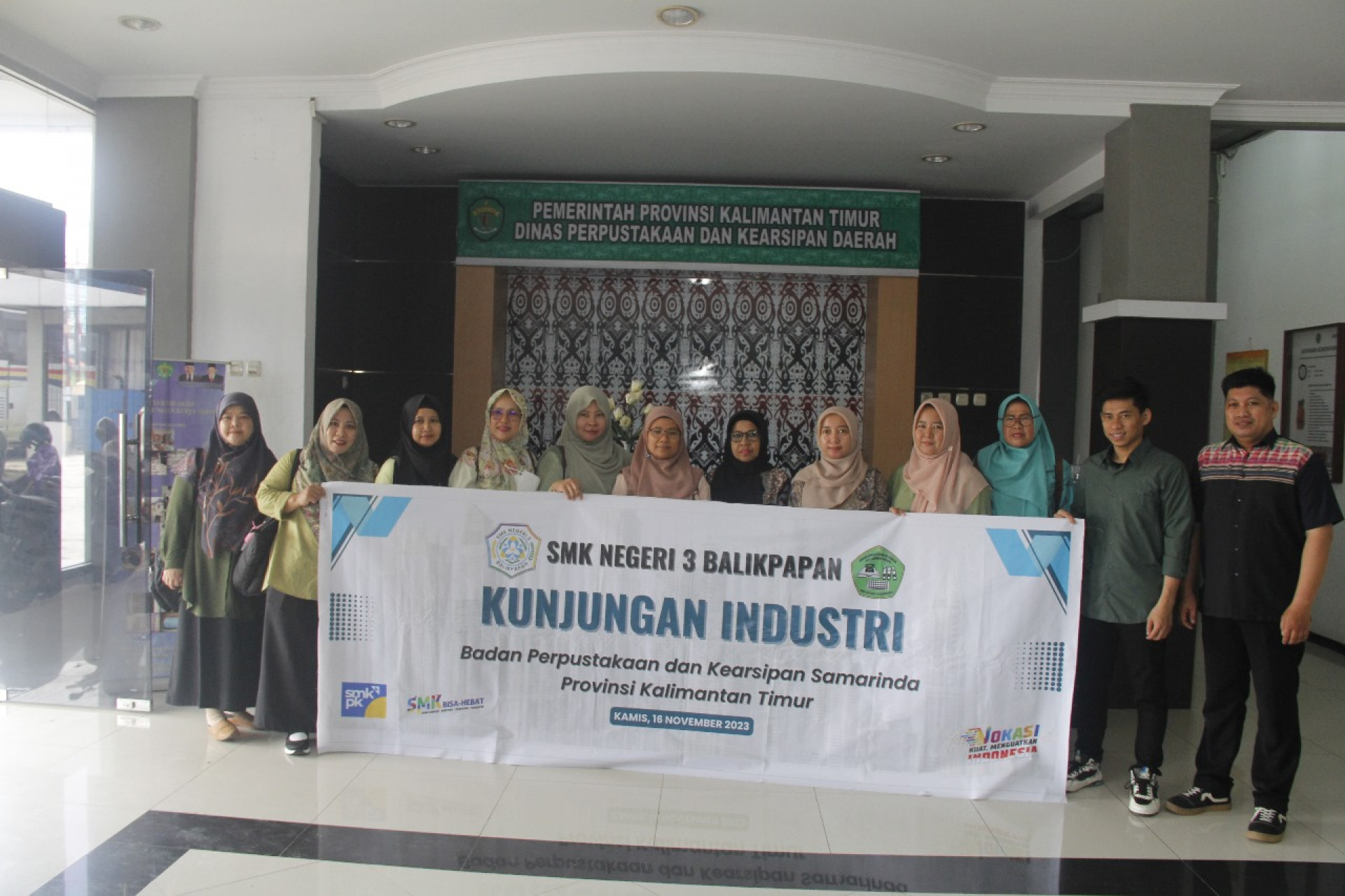 SAMARINDA,suarabalikpapan.com-Mengenal lebih dekat dunia kerja sesungguhnya, SMK Negeri 3 Balikpapan melakukan kunjungan industri ke Bidang Kearsipan Dinas Perpustakaan dan Kearsipan (DPK) Kaltim. Membawa 104 siswa yang didampingi oleh 10 guru, para siswa yang mengenakan seragam berwarna hijau tersebut disambut oleh Arsiparis DPK Kaltim, Ir.Marilah. Kunjungan industri mengajak para siswa berkeliling menyusuri fasilitas dan layanan Bidang Kearsipan serta mengedukasi siswa mengenai klasifikasi arsip dan tata kelolanya, pada Kamis (16/11/2023).