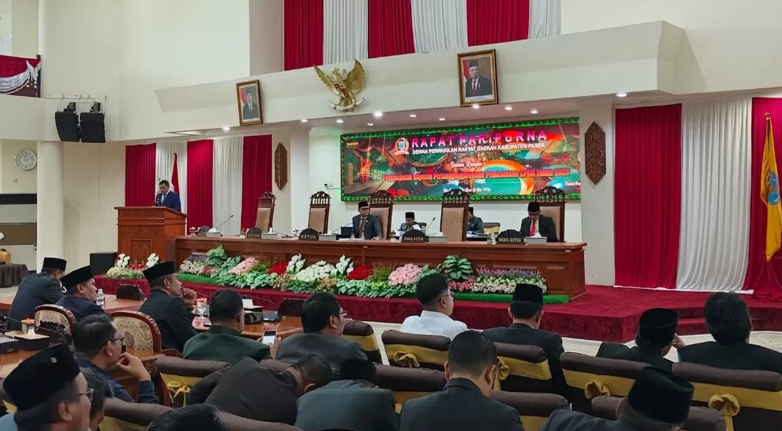 TANA PASER,suarabalikpapan.com–Bupati Paser dr. Fahmi Fadli menyampaikan laporan Pertanggungjawaban (LPj) penggunaan APBD Kabupaten Paser Tahun 2023 dalam rapat paripurna DPRD Paser, Kamis (6/6/2024).