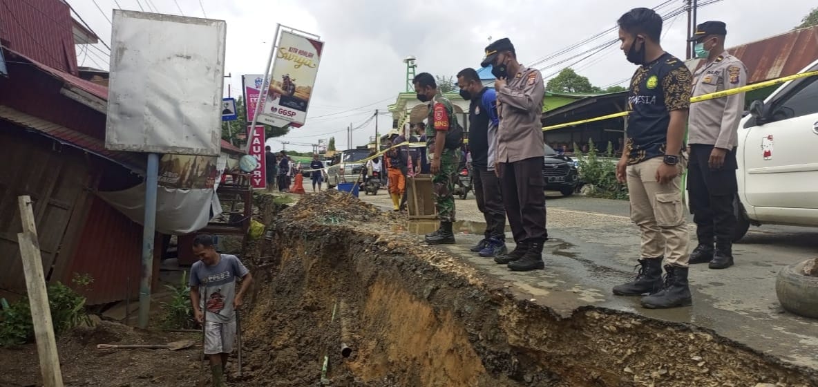 Menurutnya, terjadinya longsor di lokasi tersebut akibat tingginya curah hujan serta struktur tanah berbentuk jurang, faktor tersebut yang mempengaruhi terjadinya longsor. “Atas kejadian tersebut kami bersyukur tidak ada korban jiwa, hanya kerugian materil saja yang sampai saat ini sedang dilakukan penghitungan. Kurang lebih 8 unit bangunan berupa rumah, ruko, dan bengkel sepeda motor yang mengalami kerusakan serta 2 tiang listrik roboh,” ujarnya.