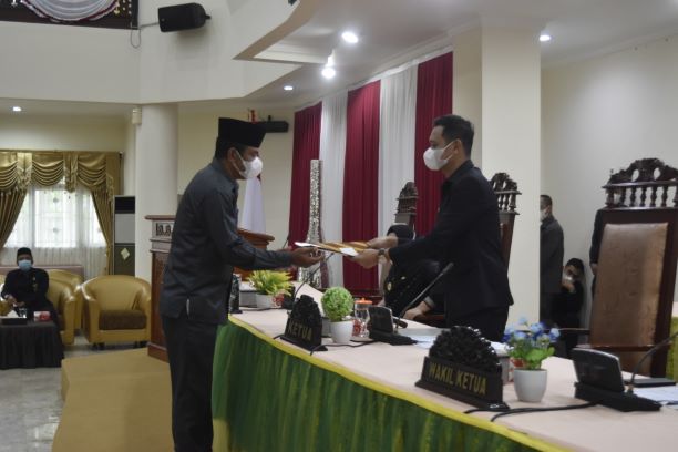Ketua DPRD Hendra Wahyudi menerima berkas Rancangan Awal RPJMD Kabupaten Paser 2021-2026 dalam rapat paripurna