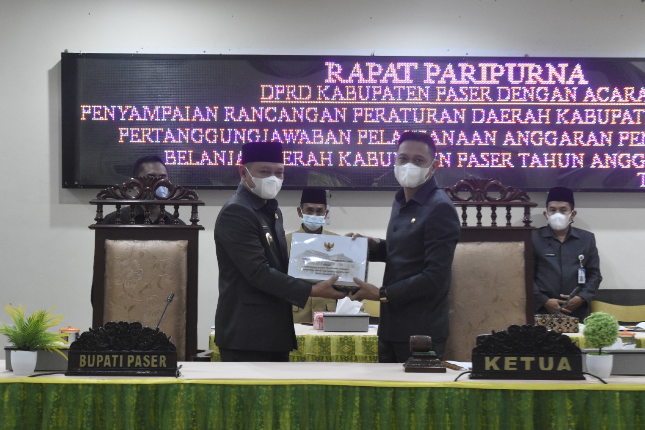TANA PASER,suarabalikpapan.com-DPRD Kabupaten Paser menggelar Rapat Paripurna Penyampaian Raperda tentang Pertanggung Jawaban APBD Kabupaten Paser 2020, di gedung parlemen Paser, Senin(28/6/2021).