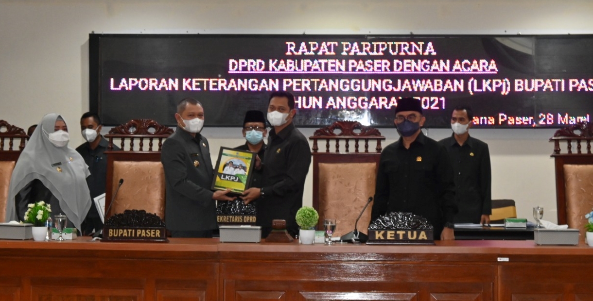 Sementara itu, Ketua DPRD Hendra Wahyudi mengatakan, setelah menerima LKPj Bupati Paser Tahun Anggaran 2021, DPRD Paser akan segera melakukan pembahasan selambat-lambatnya dengan jangka waktu 30 hari kedepan. Pembahasan LKPJ oleh Dewan nantinya akan dilakukan dengan memperhatikan capaian kinerja program dan kegiatan dan pelaksanaan peraturan daerah atau peraturan Kepala Daerah dalam menyelenggarakan urusan pemerintahan daerah.