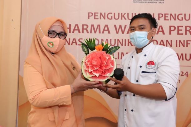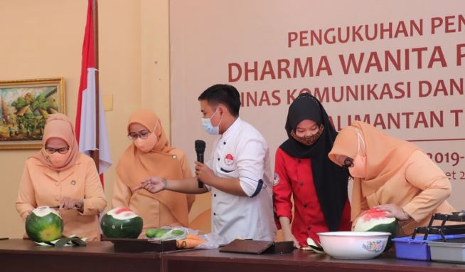 SAMARINDA,suarabalikpapan.com-Setelah acara pengukuhan kepengurusan Dharma Wanita Persatuan (DWP) Diskominfo Kaltim, di Aula Diskominfo, pada Senin (15/3/2021) dilanjutkan Pelatihan Mengukir Buah dan Sayuran oleh Komunitas Fruitcarving Samarinda yang dipimpin Taufik Ramadhan.