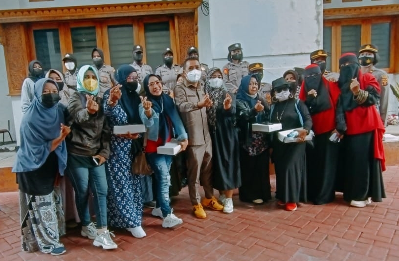 Emak-emak berfoto bersama usai melakukan pertemuan dengan anggota DPRD Balikpapan membahas kelangkaan stok minyak goreng