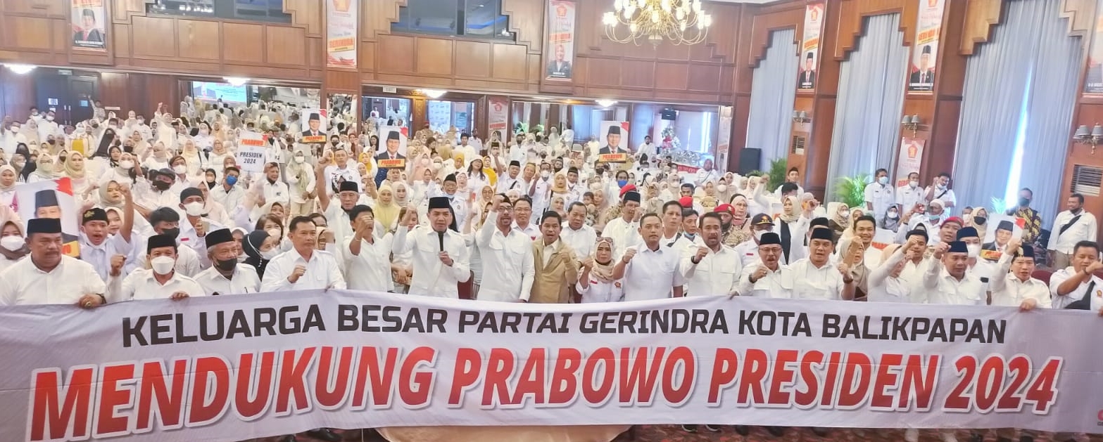 Deklarasi mendukung Prabowo Subianto menjadi Presiden pada Pemilu 2024 usai halalbihalal Partai Gerindra Kota Balikpapan di Hotel Grand Senyiur Balikpapan yang dihadiri Ketua DPD Partai Gerindra Kaltim Andi Harun