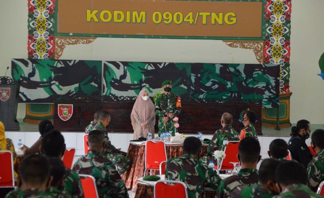 Pada kesempatan tersebut Dandim Letkol Czi Widya Wijanarko mengingatkan kepada satuannya agar tetap mematuhi Protokol Kesehatan (Prokes) Covid-19 baik saat bertugas di luar maupun di dalam Makodim.
