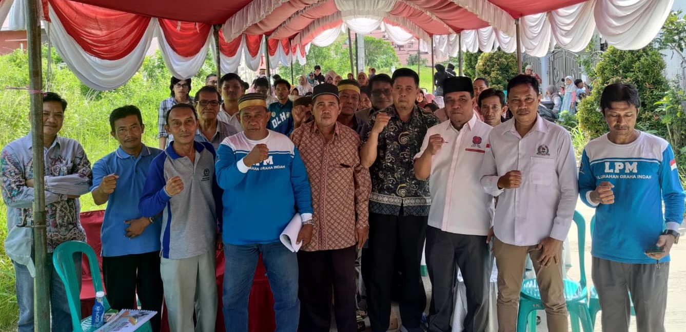 Ketua Fraksi Gerindra DPRD Kaltim, Ir H Bagus Susetyo, MM berfoto bersama usai Sosper tentang Penyelenggaraan Bantuan Hukum di Kompleks Perumahan Pesona Bukit Batuah, RT 71 Kelurahan Graha Indah, Balikpapan Utara, Sabtu (11/5/2024)