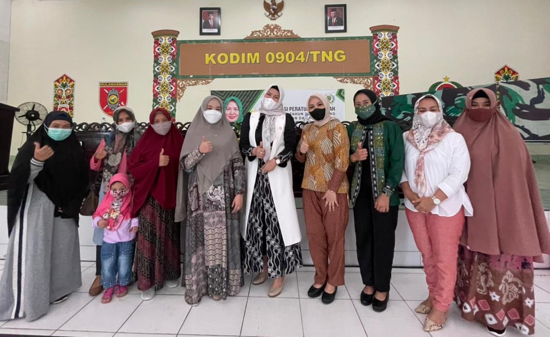 Anggota DPRD Kaltim Yenni Eviliana berfoto bersama di sela-sela kegiatan Sosper Perda Perlindungan dan Pemenuhan Hak Penyandang Disabilitas, di Aula Makodim 0904 Tanah Grogot