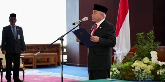 Gubernur Isran Noor saat melantik pejabat pimpinan tinggi pratama, pejabat administrator dan pejabat pengawasdi ruang Ruhui Rahayu Kantor Gubernur Kaltim