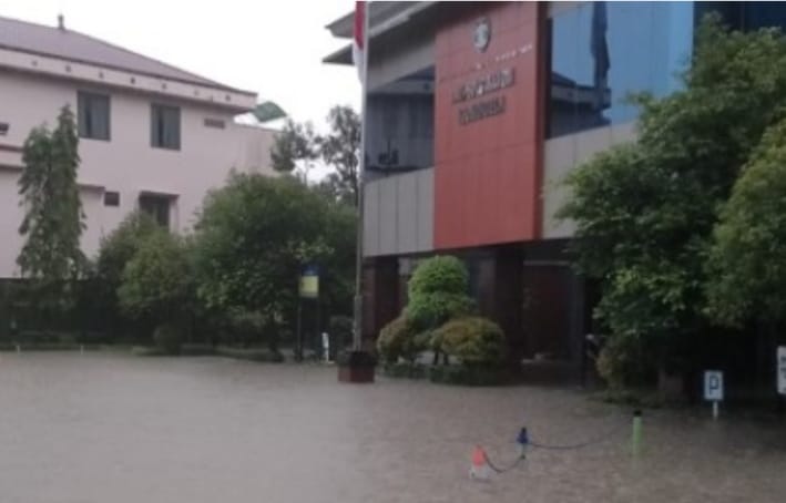 Kantor Perpustakaan Daerah Kaltim di Jalan Juanda Samarinda sering terjadi banjir saat hujan deras