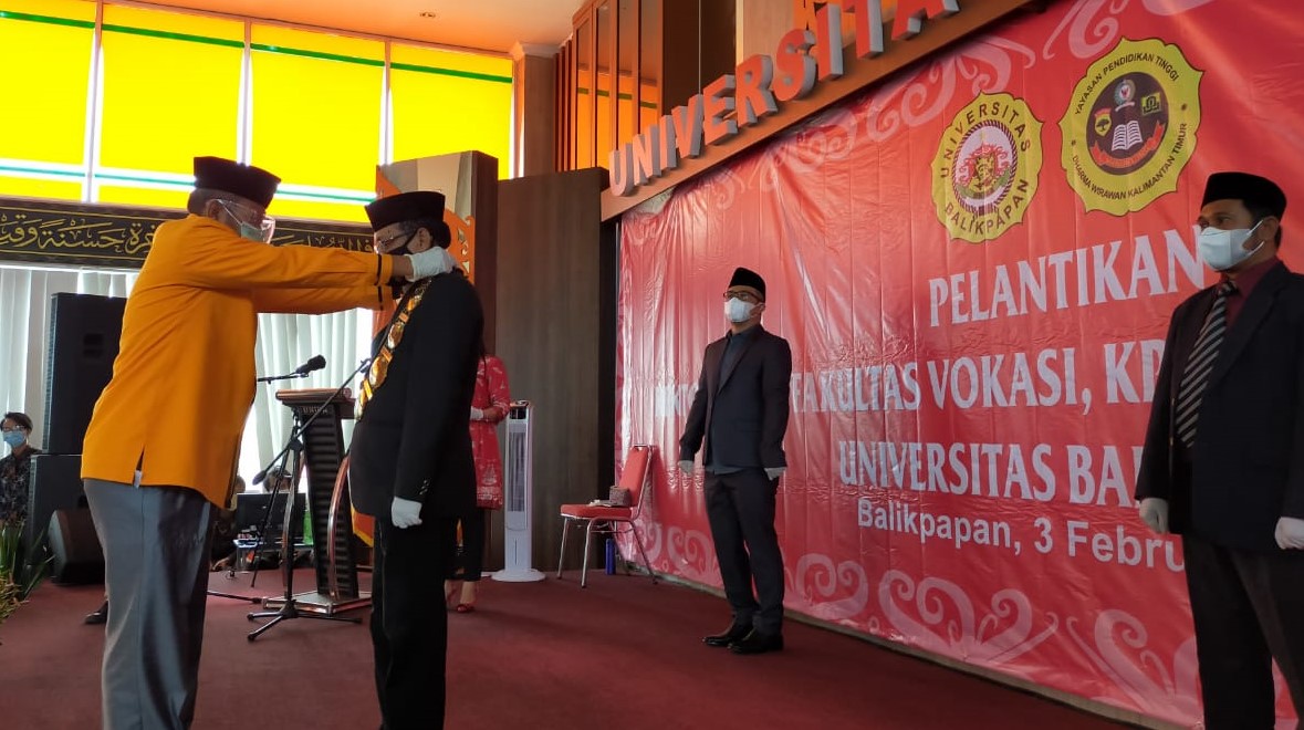 BALIKPAPAN,suarabalikpapan.com-Rektor Universitas Balikpapan (Uniba) Dr Isradi Zainal dilantik oleh Ketua Badan Pembina Yayasan Pendidikan Tinggi (Yapenti) Dharma Wirawan Kaltim (DWK) Dr Rendi Susiswo Ismail, di Gedung Aula Aji Putri Karang Melenu Lantai 8, Kampus Uniba, Rabu (3/2/2021) siang.