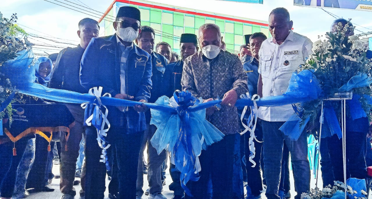 Ketua DPW Partai NasDem Kaltim Isran Noor didampingi Ketua DPD NasDem Balikpapan Ahmad Basir dan Ketua Dewan Pakar DPP GARPU Pietra M Paloh saat meresmikan Kantor Sekretariat DPD Partai NasDem Balikpapan