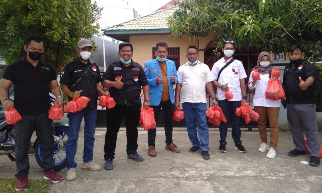 Pembagian masker dan vitamin oleh PPI dan KNPI Paser