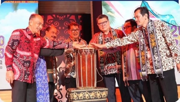JAKARTA,suarabalikpapan.com-Tabuhan gendang di pentas rumah adat Kutai oleh Penjabat Gubernur Kaltim Akmal Malik tanda dimulainya Kaltim Festival 2023, “Gate of Nusantara”. Event promosi seni budaya dan pariwisata Benua Etam resmi dibuka dan digelar di Anjungan Kalimantan Timur Kawasan Taman Mini Indonesia Indah Jakarta, Sabtu (25/11/2023).