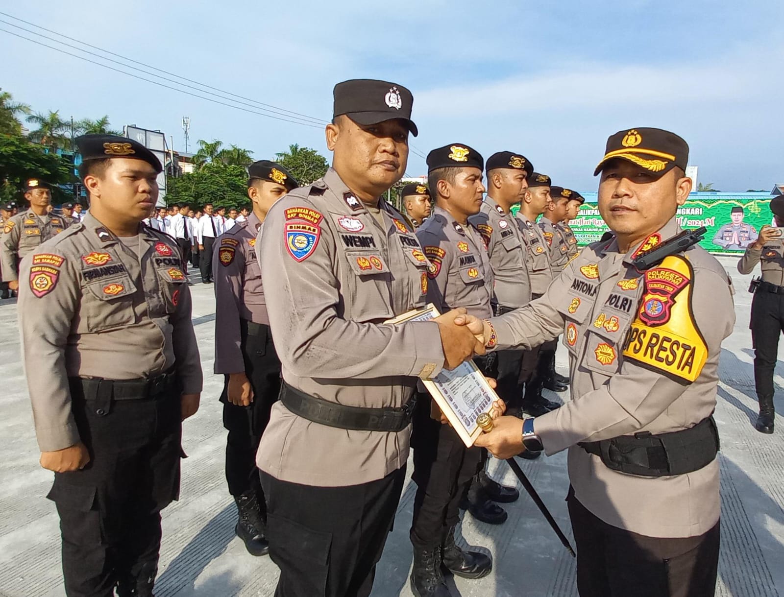Pemberian penghargaan kepada personel kepolisian Polresta Balikpapan ini berjalan dengan lancar dan penuh khidmat. (hms-polrestabppn/sb-01).