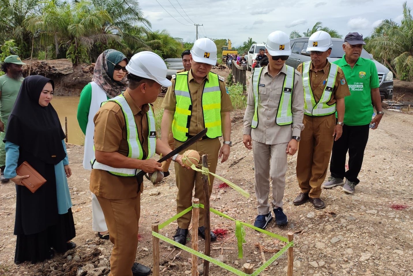 Ketua DPRD Paser, Hendra Wahyudi bersama Bupati Paser dr. Fahmi Fadli saat melakukan pemancangan Jembatan Lemo-Lemo Desa Muara Adang, Kecamatan Long Ikis