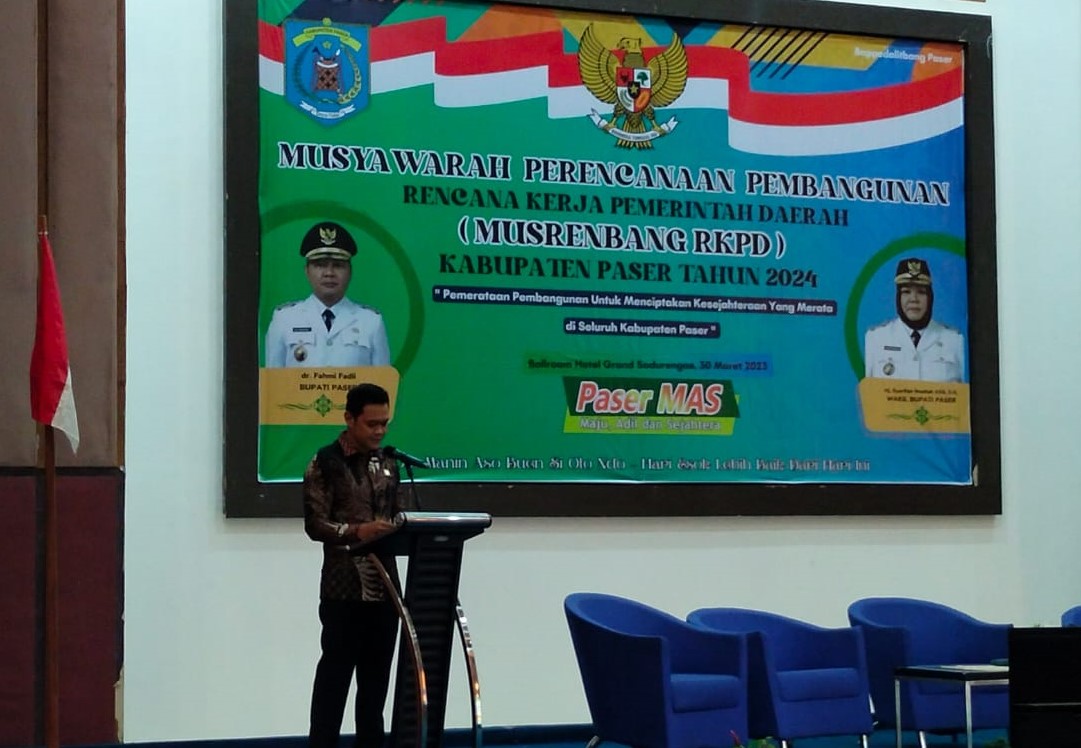 TANA PASER,suarabalikpapan.com-Guna mewujudkan pelaksanaan Peraturan Menteri Dalam Negeri (Permendagri) Nomor 86 Tahun 2017 Pasal 178 Ayat 1, Ayat 5 dan Ayat 6, Ketua DPRD Paser Hendra Wahyudi menyampaikan hasil penelaahan pokok-pokok pikiran (Pokir) DPRD Paser saat Musyawarah Rencana Pembangunan (Musrenbang) untuk penyusunan Rencana Kerja Pemerintah Daerah (RKPD) Kabupaten Paser tahun 2024, di Ballroom Hotel Kriyad Sadurengas, pada Kamis (30/3/2023).