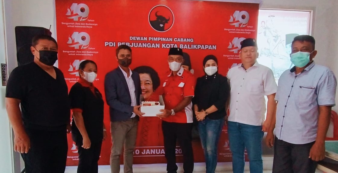 BALIKPAPAN,suarabalikpapan.com-PDI Perjuangan memperingati HUT ke-49 pada 10 Januari 2022 dengan  tema Bangunlah Jiwa dan Badanya untuk Indonesia Raya. Tema ini dicanangkan Ketua Umum PDI Perjuangan Megawati Soekarnoputri. Berbagai ucapan datang dari berbagai kalangan. Salah satunya dari Manajemen Hotel Novotel Balikpapan yang menyampaikan selamat ulang tahun di Kantor DPC PDI Perjuangan Kota Balikpapan Jalan Sepinggan Pratama, Kelurahan Sepinggan, Balikpapan Selatan, pada Selasa (11/01/2022).