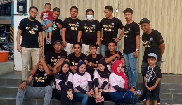 Karyawan Marwah Skin Clinic cabang Balikpapan berfoto bersama di sela-sela pembagian takjil