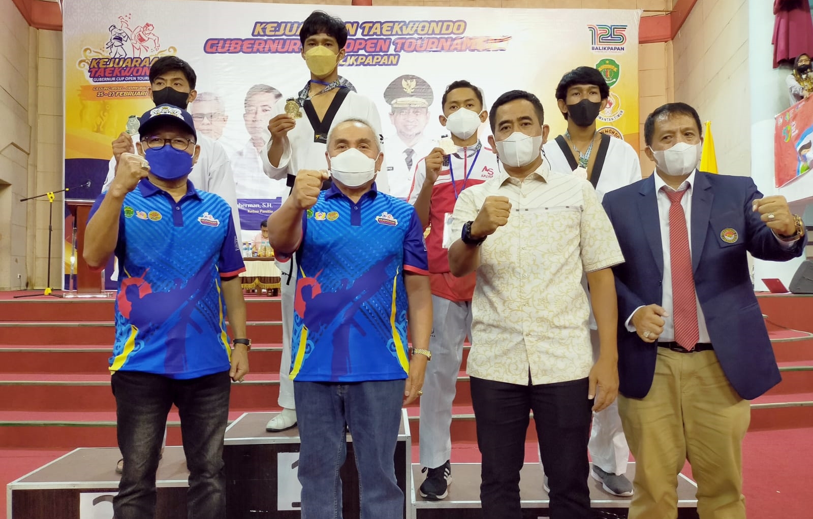 Gubernur Isran Noor berfoto bersama di sela-sela penutupan Kejuaraan Taekwondo Gubernur Cup Open Tournament Balikpapan 2022 di Dome Balikpapan