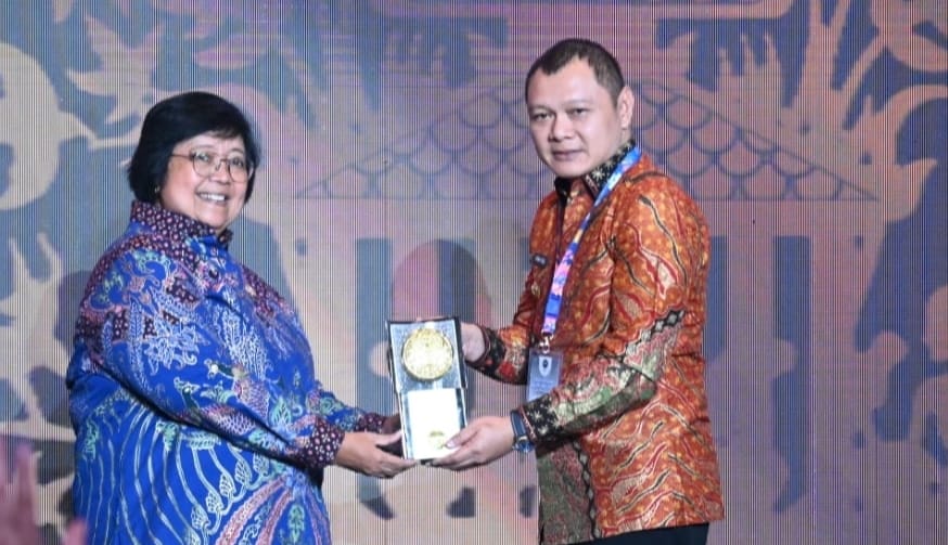 Bupati Paser dr Fahmi Fadli menerima Piala Adipura 2022 dari Menteri KLHK Siti Nurbaya, di Gedung Manggala Wanabakti, Jakarta, Selasa (28/2/2023).