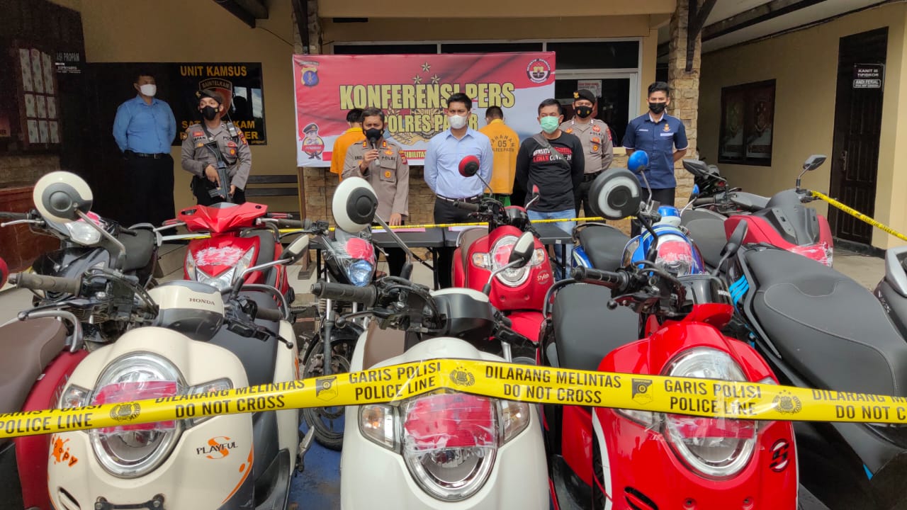 “Dari keterangan dari kedua tersangka sepeda motor hasil curian tersebut digadaikan di Barabai Kabupaten Hulu Tengah Kalimantan Selatan dan di wilayah Kabupaten Paser dengan harga Rp 1,5 juta sampai Rp 3,8 juta,” kata Kapolres AKBP Eko Susanto saat konferensi pers, di halaman Mapolres Paser, Selasa (15/6/2021).
