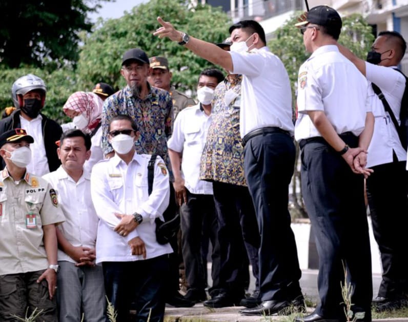 Wali Kota Samarinda Andi Harun saat meninjau kegiatan pembongkaran Jembatan Gang Nibung di Jalan Dr Sutomo Kelurahan Sidodadi Kecamatan Samarinda Ulu