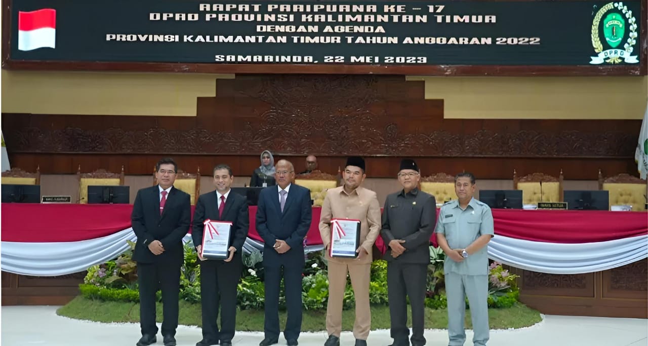 SAMARINDA,suarabalikpapan.com–Pemprov Kalimantan Timur kembali meraih opini Wajar Tanpa Pengecualian (WTP) atas Laporan Keuangan 2022. Raihan prestasi ini, menjadikan Kaltim secara berturut-turut selama 10 kali berhasil mempertahankan predikat WTP. Penyerahan Laporan Hasil Pemeriksaan (LHP) Badan Pemeriksa (BPK) RI atas LKP Pemprov Kaltim 2022 dilakukan Anggota VI BPK RI, Pius Lustrilanang dalam Rapat Paripurna ke 17 DPRD Kaltim yang dipimpin Ketua DPRD Kaltim Hasan Mas’ud, di Gedung DPRD Kaltim, Senin (22/5/2023).