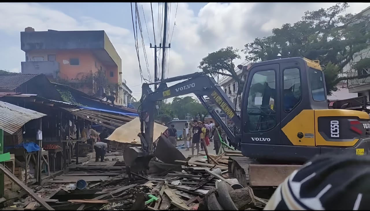 Pemkot Balikpapan menertibkan bangunan yang berdiri di atas fasum dan fasos di kawasan Pasar Pandansari Kelurahan Margasari Balikpapan Barat
