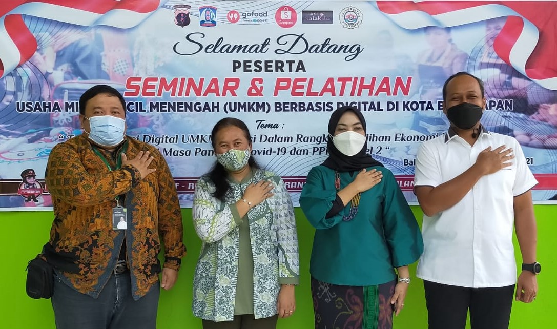 BALIKPAPAN,suarabalikpapan.com-Polda Kaltim menggelar Seminar dan Pelatihan Usaha Mikro Kecil Menengah (UMKM) Berbasis Digital, di Aula SMKN 4 Balikpapan, pada Kamis (11/11/2021). Kegiatan yang diikuti mahasiswa Uniba, siswa SMKN4 Balikpapan dan para pelaku UMKM Balikpapan ini mengangkat tema “Transformasi Digital UMKM Presisi dalam rangka Pemulihan Ekonomi Kaltim di Masa Pandemi Covid-19 dan PPKM Level 2” dibuka oleh Kasubdit Ekonomi Dit Intelkam Polda Kaltim AKBP Hendrik Eka Bahalwan, SH, SIK.