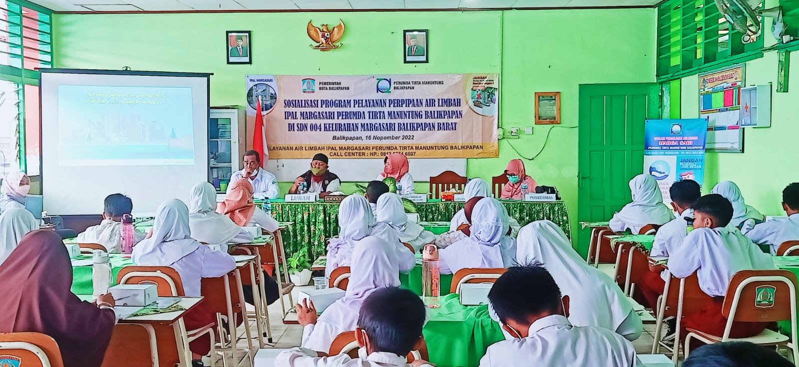 BALIKPAPAN,suarabalikpapan.com-Perusahaan Umum Daerah (Perumda) Tirta Manuntung Balikpapan (PTMB) menggelar sosialisasi program pelayanan perpipaan Instalasi Pengolahan Air Limbah (IPAL) Marga Sari, di SDN 004 Balikpapan Barat, pada Rabu (16/11/2022).