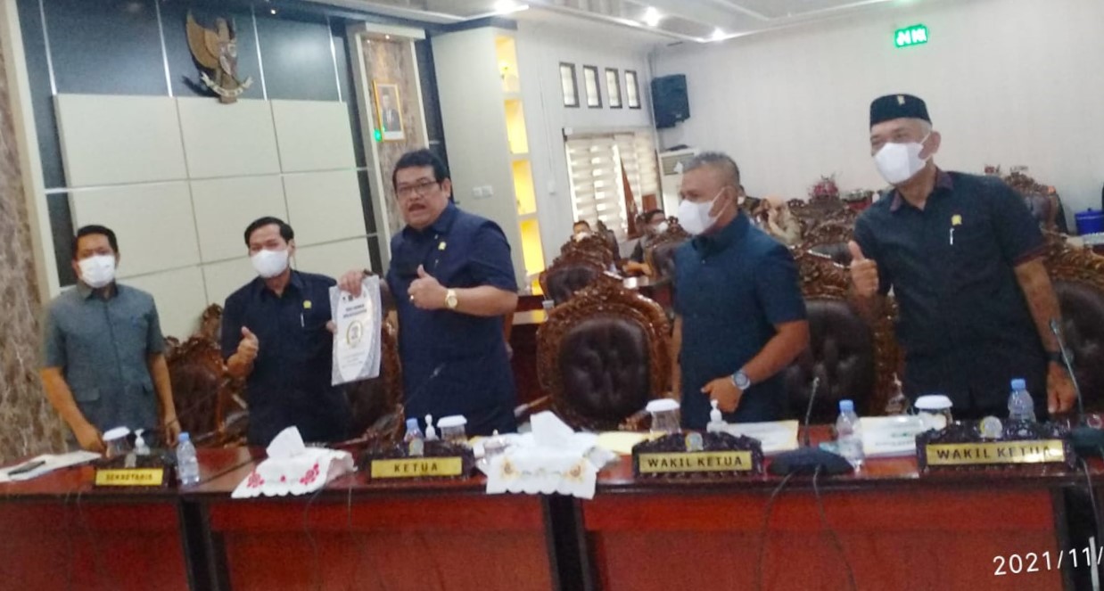 BALIKPAPAN,suarabalikpapan.com-DPRD Kota Balikpapan menggelar rapat paripurna dengan agenda penyampaian pendapat akhir fraksi-fraksi terhadap jawaban Wali Kota atas Raperda APBD 2022, di gedung parlemen Balikpapan, pada Senin (1/11/2021). Rapat paripurna dipimpin Ketua DPRD Abdulloh didampingi Wakil Ketua Budiono, Sabaruddin Panrecalle, Subari, Sekretaris DPRD Irfan Taufiq beserta 37 anggota DPRD.
