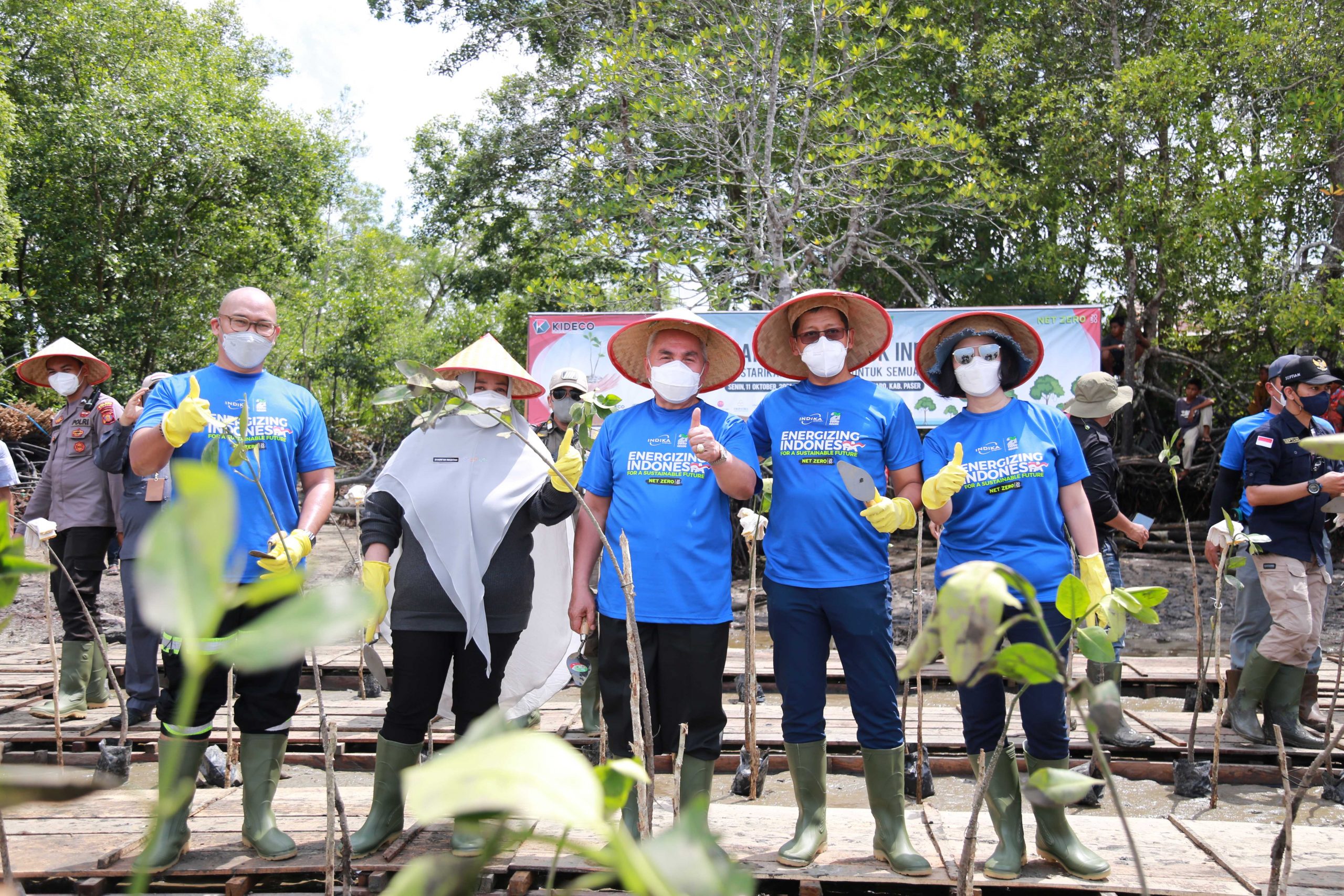 Selanjutnya Gubernur Kalimantan Timur, Bupati dan Wakil Bupati Paser beserta unsur Forkopimda, Ketua DPRD, Jajaran Manajemen Indikan Energy dan Manajemen Kideco melakukan penanaman mangrove secara simbolis di area yang sudah disediakan.