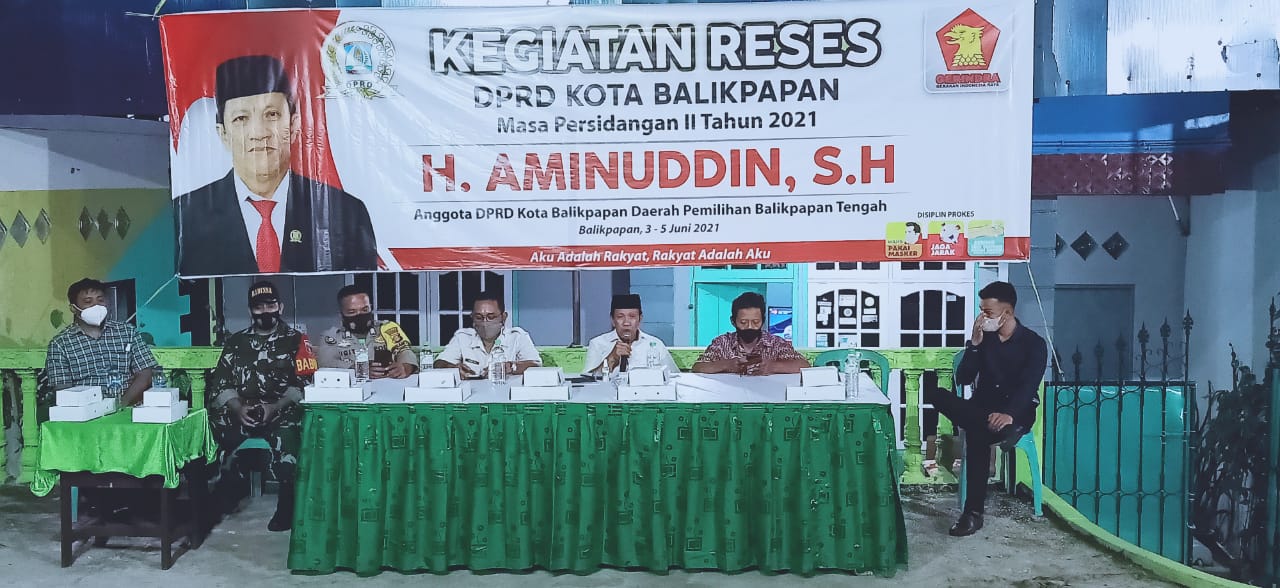 BALIKPAPAN,suarabalikpapan.com-Sekretaris Komisi II DPRD Balikpapan H Aminuddin, SH menggelar reses Masa Sidang II/2021,  di RT 10 Kelurahan Sumber Rejo, Kecamatan Balikpapan Tengah, dengan menerapkan protokol Kesehatan (prokes) pada Selasa (2/6/2021). Kegiatan reses dirangkai pembentukan Kelompok Wanita Tani (KWT) dan panitia Clean Green Health (CGH).