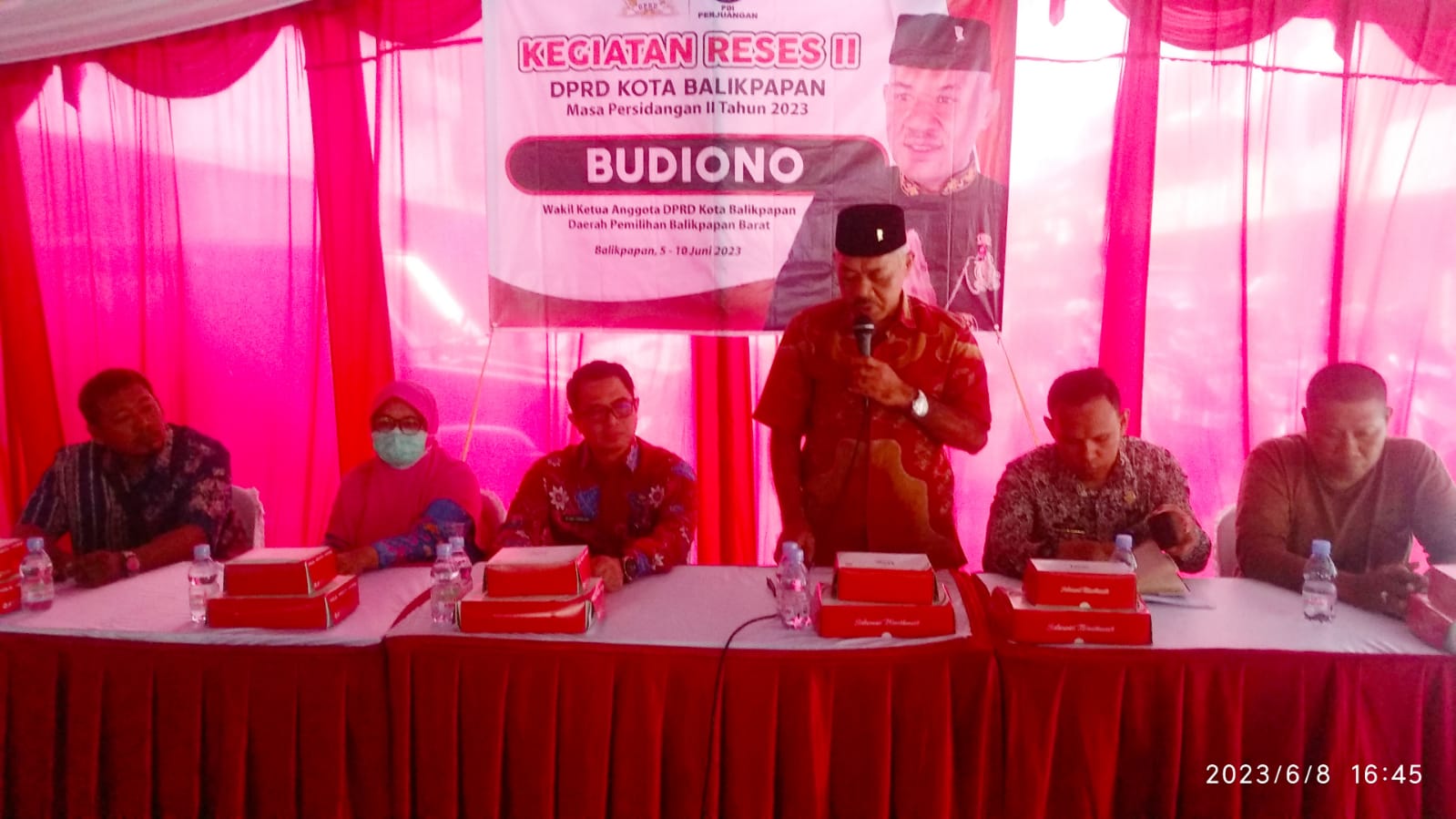 Wakil Ketua DPRD Balikpapan Budiono menggelar reses Masa Sidang II/2023 di Jalan Pandasari RT 18, Kelurahan Margasari, Kecamatan Barat pada Kamis (8/6/2023)