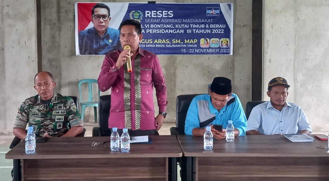 SAMARINDA,suarabalikpapan.com-Anggota DPRD Provinsi Kalimantan Timur H. Agus Aras dari Fraksi Demokrat menggelar Masa Sidang III/2022, di daerah pemilihanya (Dapil) Dapil Bontang, Kutai Timur dan Berau 15 hingga 22 November 2022.
