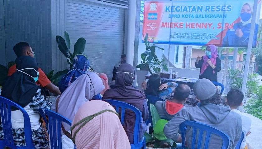 BALIKPAPAN,suarabalikpapan.com- Wakil Ketua Komisi II DPRD Balikpapan dari Fraksi Demokrat, Mieke Henny S.Pd menggelar reses Masa Sidang III/2021, di Kompleks Bumi Rengganis Blok 1A, RT 35 Kelurahan Gunung Bahagia, Balikpapan Selatan, pada Rabu (6/10/2021) sore.