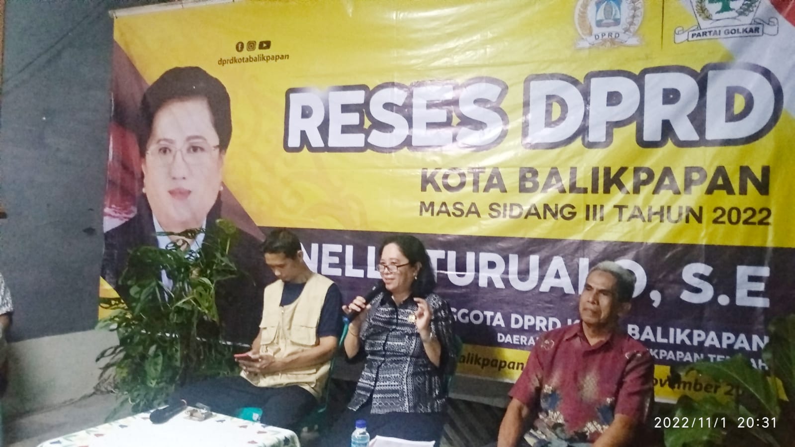 BALIKPAPAN,suarabalikpapan.com-Wakil Ketua Komisi II DPRD Balikpapan dari Fraksi Partai Golkar Nelly Turuallo menggelar Reses Masa Persidangan III/ 2022 di Jalan Sultan Awaluddin RT 02 Kelurahan Karang Jati, Balikpapan Tengah, pada Selasa (1/11/2022) malam. Ketua RT 02 Junaidi dalam sambutannya memberikan apresiasi atas dilaksanakan reses di lingkungannya.
