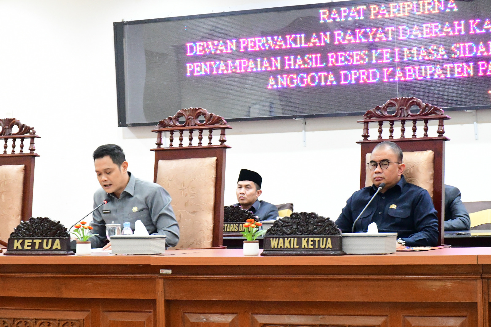 TANA PASER,suarabalikpapan.com-DPRD Paser menggelar rapat paripurna Penyampaian Hasil Reses Pertama Masa Sidang II/2023 yang digelar 23 sampai 27 Januari 2023. Rapat paripurna berlangsung di Ruang Rapat Paripurna Sekretariat DPRD Paser, Senin (13/2/2023). Ketua DPRD Hendra Wahyudi ST memimpin rapat tersebut didampingi Wakil Ketua II H. Fadli Imawan serta seluruh anggota DPRD Paser. Ketua DPRD Hendra Wahyudi mengatakan, hasil reses segera disampaikan kepada Pemkab Paser 7 hari sebelum pelaksanaan Musrenbang Tingkat Kecamatan. Rekapitulasi hasil reses di kelompokkan berdasarkan Daerah Pemilihan (Dapil) yaitu, Dapil 1 Kecamatan Tanah Grogot 8 anggota DPRD sebanyak 334 usulan.Kemudian Dapil 2 Kecamatan Kuaro, Kecamatan Batu Sopang, Kecamatan Muara Komam dan Kecamatan Muara Samu 8 anggota DPRD 282 usulan. Dapil 3 Kecamatan Long Ikis dan Kecamatan Long Kali 8 anggota DPRD 252 usulan dan Dapil 4 Kecamatan Paser Belengkong, Kecamatan Tanjung Harapan dan Kecamatan Batu Engau 6 anggota DPRD 171 usulan. “Seluruh usulan tersebut akan secepatnya kami bawa ke pemerintah daerah sebelum dilakukannya Musrembang. Tentunya seluruh usulan yang menjadi skala prioritas akan kami perjuangkan,” kata Hendra Wahyudi. Pada kesempatan tersebut Hendra mengucapkan terima kasih kepada seluruh anggota DPRD Paser yang telah melaksanakan dan melaporkan hasil reses dalam rapat paripurna tersebut. Seluruh usulan tentunya merupakan usulan prioritas yang disampaikan oleh masyarakat. “Kami berharap seluruh usulan tersebut dapat di terealisasikan seluruhnya,”katanya. Sementara itu, Angota Komisi II DPRD Paser H. Lamaludin yang membacakan laporan hasil reses seluruh Dapil, mengatakan, terdapat 4 bidang yang menjadi skala prioritas yakni bidang infrastruktur dan lingkungan hidup terdapat 569 usulan dari total 1.039 usulan atau 55 persen dari total usulan. Banyaknya usulan aspirasi masyarakat pada bidang infrastruktur ini sebab bidang infrastruktur merupakan urusan wajib berkaitan dengan pelayanan dan kebutuhan dasar masyarakat. Adapun usulan aspirasi masyarakat yang masih didominasi usulan berupa peningkatan jalan, pengadaan LPJU, pembuatan parit atau drainase di lingkungan perumahan, pembangunan jembatan titian, Sistem Penyediaan Air Minum (SPAM), pengadaan bak sampah, pembangunan jembatan, box culvert, pengadaan tandon, sumur bor, rehabilitasi rumah layak huni, pengelolaan sumber daya air, peningkatan prasarana, serta sarana dan fasilitas umum. “Pada bidang infrastruktur hal tersebut yang masih mendominasi,” ujarnya. Sedangkan untuk bidang perekonomian lanjut Lamaludin, terdapat 206 usulan dari total 1.039 usulan atau 20 persen dari total usulan, usulan masyarakat untuk bidang perekonomian sebagian besar pada sektor pertanian, baik tanaman pangan, hortikultura, perkebunan, peternakan maupun perikanan, pengembangan UMKM, perindustrian dan perdagangan. Adapun usulan aspirasi masyarakat terkait bidang perekonomian, seperti usulan pengadaan sarana dan prasarana pertanian dan perikanan, pengadaan bibit sawit, pengadaan bibit ikan, pengadaan bibit ternak, pembangunan pintu air, pembangunan jalan usaha tani, bantuan modal usaha dan lain-lain. Selanjutnya untuk bidang pengembangan SDM terdapat 94 usulan dari total 1.039 usulan atau 9 persen dari total usulan. Usulan aspirasi masyarakat tersebut masih didominasi usulan berupa pembangunan fasilitas pendidikan seperti pembangunan ruang kelas baru, pembangunan pagar sekolah, toilet sekolah, pengadaan fasilitas Posyandu dan sapras penunjang lainnya. Sedangkan di bidang Pemerintahan terdapat 170 usulan dari total 1.039 usulan atau 16 persen dari total usulan. Usulan masyarakat pada bidang pemerintahan ini didominasi oleh usulan hibah rumah ibadah. “Usulan tersebut meliputi pembangunan masjid, musala, majelis talim, gereja, pengadaan sarana dan prasarana tempat wisata dan lain-lain,”pungkasnya.(sb-06)