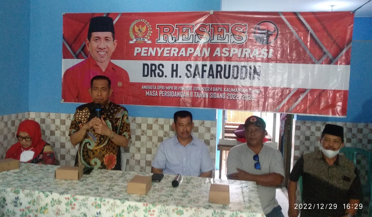 BALIKPAPAN,suarabalikpapan.com-Anggota Komisi III DPR RI Dapil Kaltim Drs H Irjen Pol (Purn) Safaruddin menggelar reses Masa Persidangan II Tahun 2022/2023 guna menyerap aspirasi masyarakat Kaltim di Jalan Al Makmur, Kelurahan Damai, Balikpapan Kota, pada Kamis (29/12/2022).