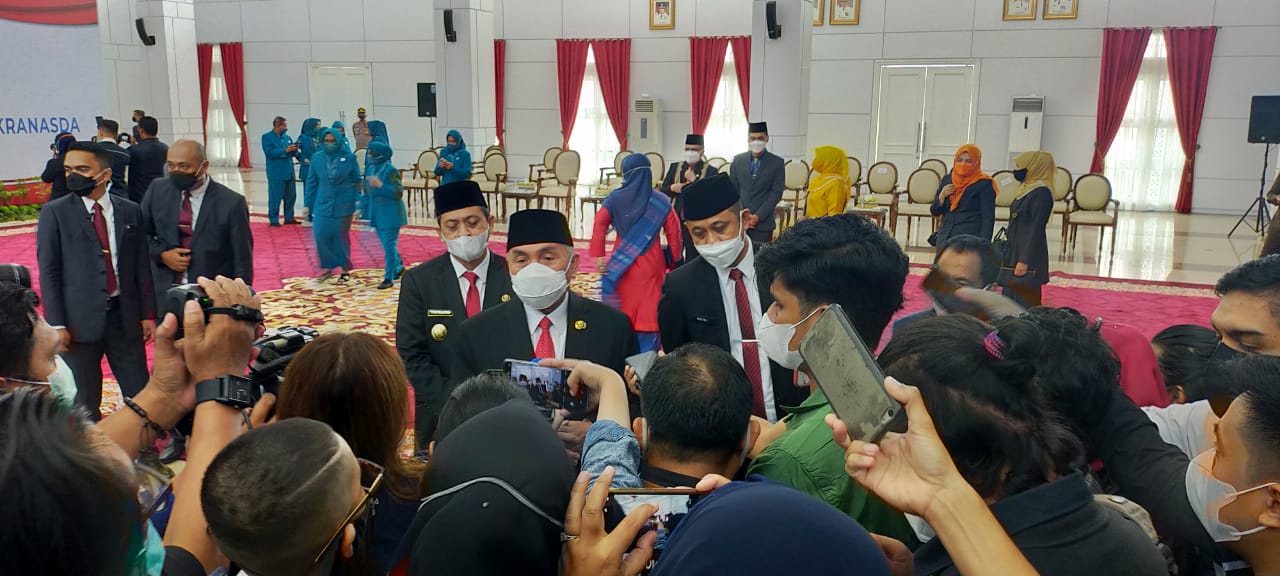 Gubernur Isran Noor memberikan keterangan pers usai melantik Rahmad Mas’ud sebagai Wali Kota Balikpapan di Pendopo Odah Etam, Kompleks Kantor Gubernur Kaltim, Jalan Gajah Mada II, Senin (31/5/2021) (FOTO:ABDUL HAMID/SUARABALIKPAPAN)