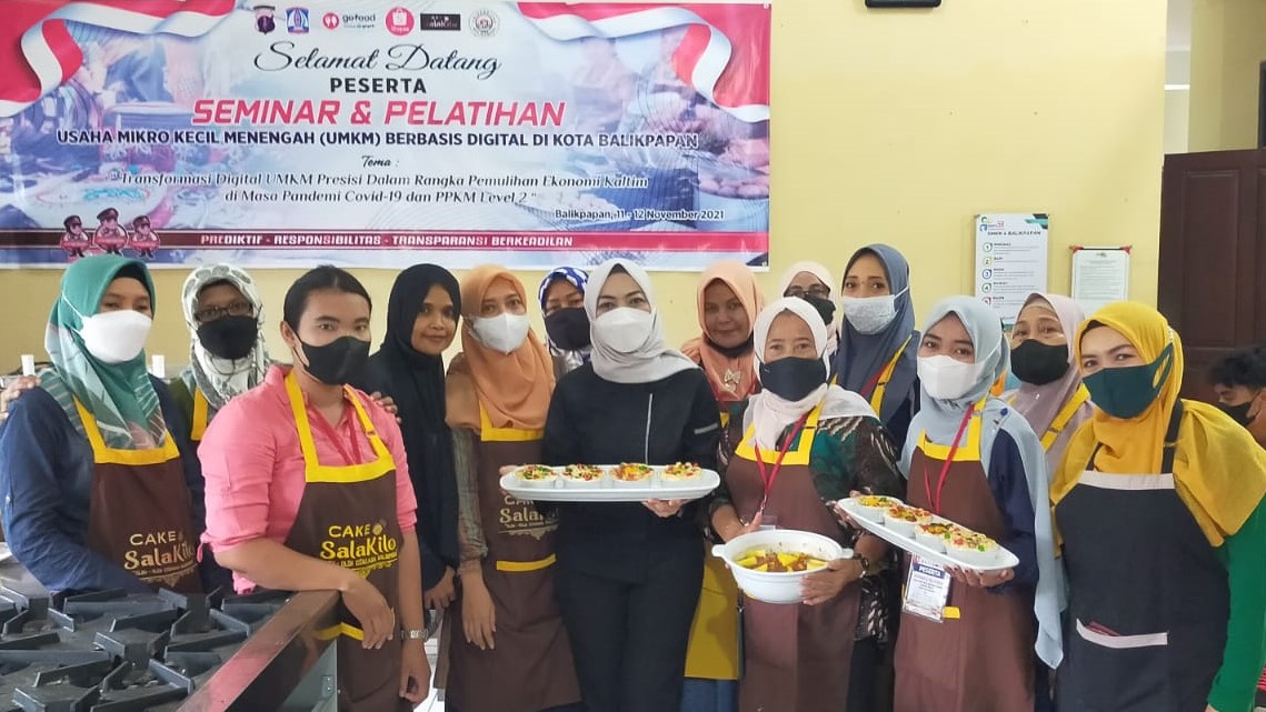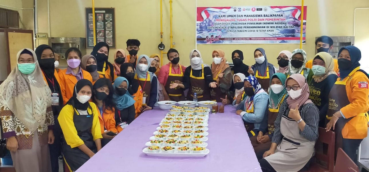 BALIKPAPAN,suarabalikpapan.com-Seminar dan Pelatihan Usaha Mikro Kecil Menengah (UMKM) Berbasis Digital yang digelar, Polda Kaltim di Aula SMKN 4 Balikpapan, selama dua hari, 11 dan 12 November 2021 berlangsung sukses. Pada hari kedua berlangsung kegiatan praktik usaha kuliner yang melibatkan pelaku UMKM, siswa SMKN 4 Balikpapan dan mahasiswa Universitas Balikpapan (Uniba).