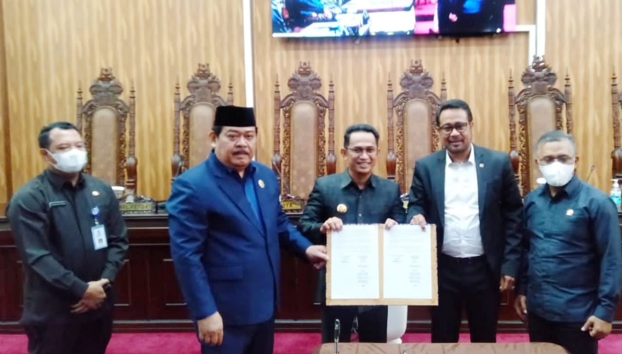 Rapat paripurna dipimpin Ketua DPRD Abdulloh didampingi Wali Kota Rahmad Mas’ud, Pejabat Sekda Muhaimin, Wakil Ketua DPRD Sabaruddin Panrecalle dan Subari, Sekretaris DPRD Irvan Taufiq serta 40 anggota DPRD.