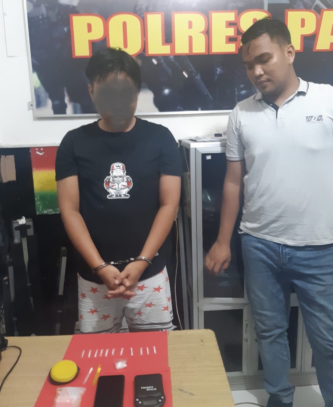 Tersangka AY (kiri) beserta barang bukti usai diamankan Satreskoba Polres Paser