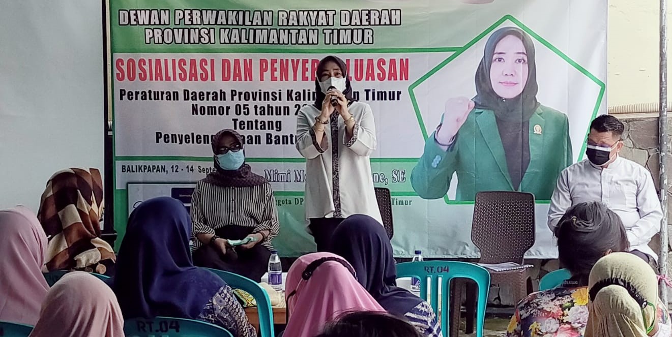 BALIKPAPAN,suarabalikpapan.com-Anggota DPRD Kaltim, Mimi Meriami BR Pane, SE dari Fraksi PPP, melakukan sosialisasi Perda Provinsi Kaltim Nomor 05 Tahun 2019 tentang Penyelenggaraan Bantuan Hukum, di Jalan Sultan Alaudin RT 04 Nomor 04 Kelurahan Mekar Sari, Kecamatan Balikpapan Tengah, Minggu (12/9/2021) pukul 14.00 wita. Dalam sosialisasi tersebut, anggota DPRD Dapil Balikpapan ini didampingi  narasumber Heri Sunaryo, SH dengan moderator Minu S.