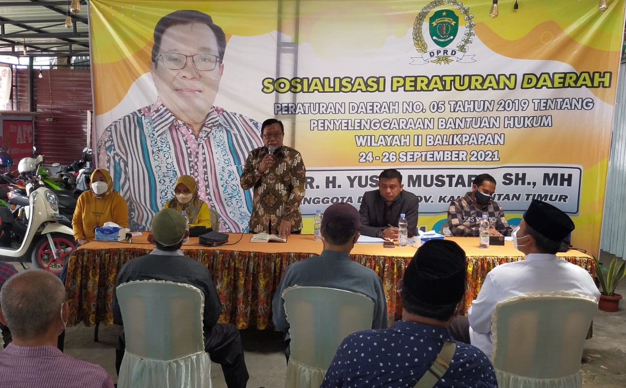 BALIKPAPAN,suarabalikpapan.com-Wakil Ketua Komisi I DPRD Kaltim, DR H Yusuf Mustafa SH MH, dari Fraksi Partai Golkar, melakukan sosialisasi Perda Provinsi Kaltim Nomor 05 Tahun 2019 tentang Penyelenggaraan Bantuan Hukum, di Kompleks Ruko Pasar Sepinggan, Jalan Sepinggan  No 10 RT 25 Kelurahan Sepinggan, Kecamatan Balikpapan Selatan, Minggu (26/9/2021) pukul 11.00 wita.
